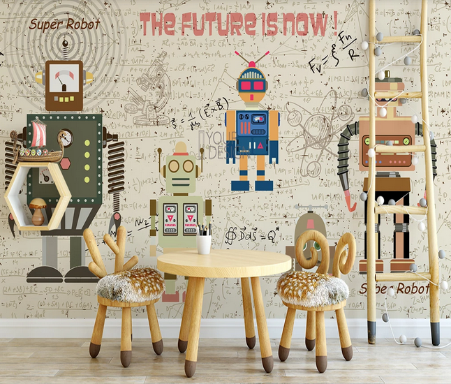 Cartoon Roborts Nursery Wallpaper, Super Roborts Kids' Room Babies' Room Children' Room Wall Murals