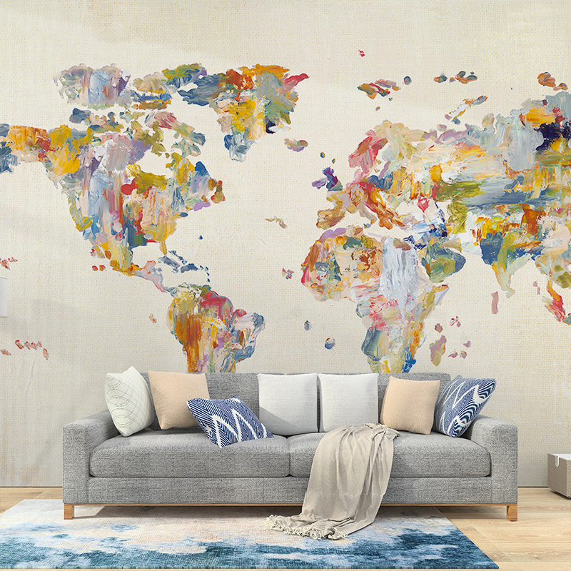 Northern Europe oil painting world map background wall cloth wallpaper sitting room hotel