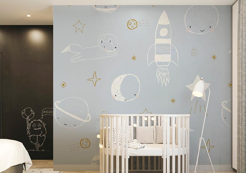 Small pure and fresh and the dog rocket cartoon children room wallpaper boy bedroom wall cloth
