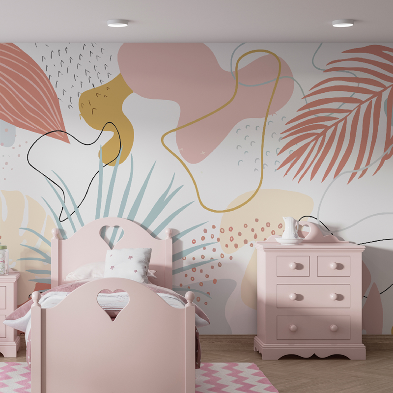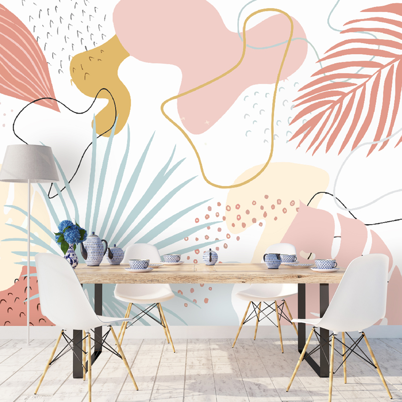 Pink&Blue Abstract Shape&Leaves Tropical Wallpaper Mural for Background Kids Nursery Room Wall Murals