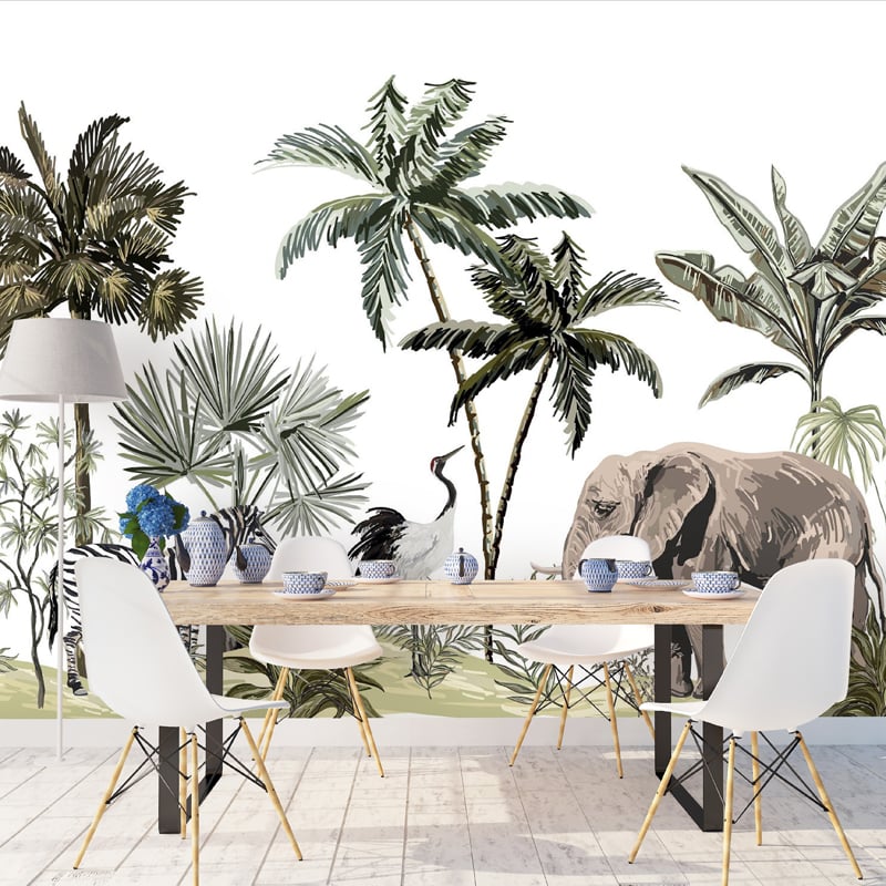 Safari Animals Sticker Giraffe Zebra Elephant Cartoon Children's Jungle Wallpaper Murals for Kids Room Kindergarten