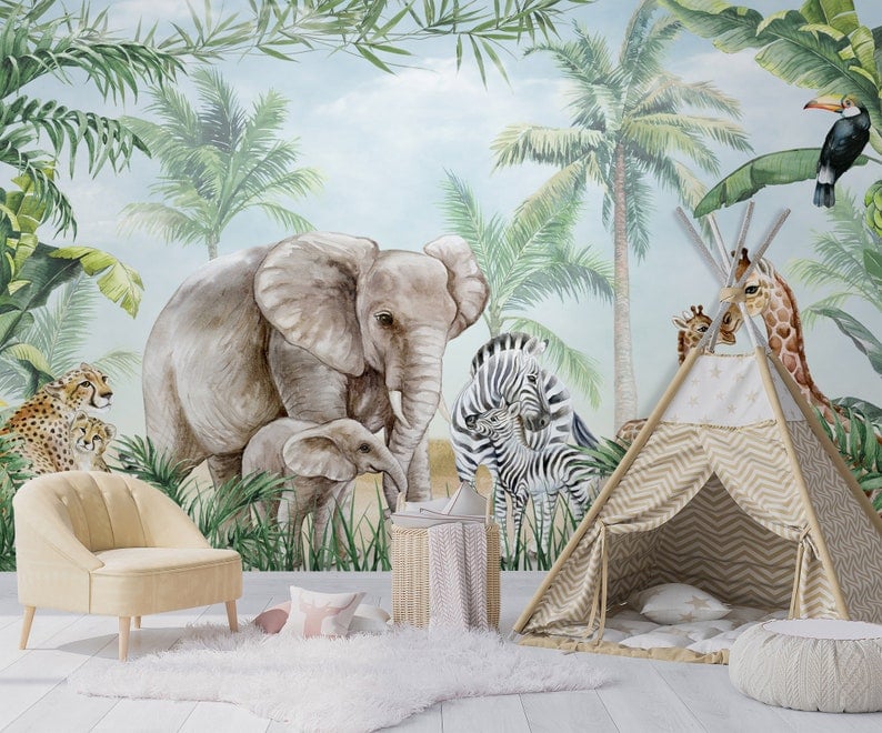 Plant Forest Safari Animals Jungle Kids Wallpaper 3D Cartoon Mural for Nursery Room Baby Tropical Wallpaper Wall Murals