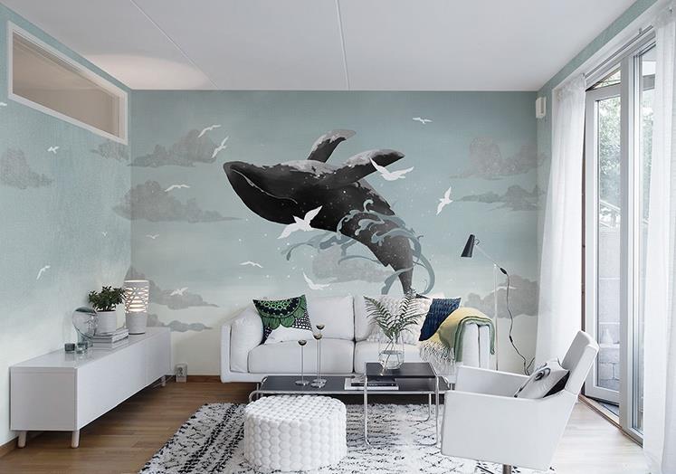 The whale seabirds sky wallpaper murals