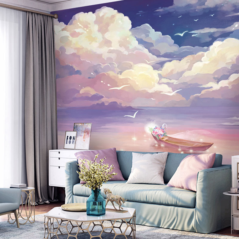 5.Level off surface of mural with a scraper, cut out the excess part with a knife and clean overflow glue with a sponge. Donot touch surface of mural with glue glue and avoid