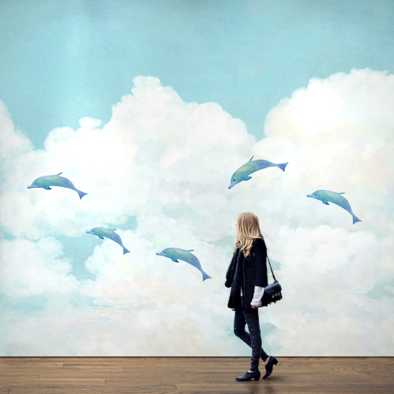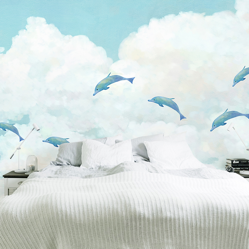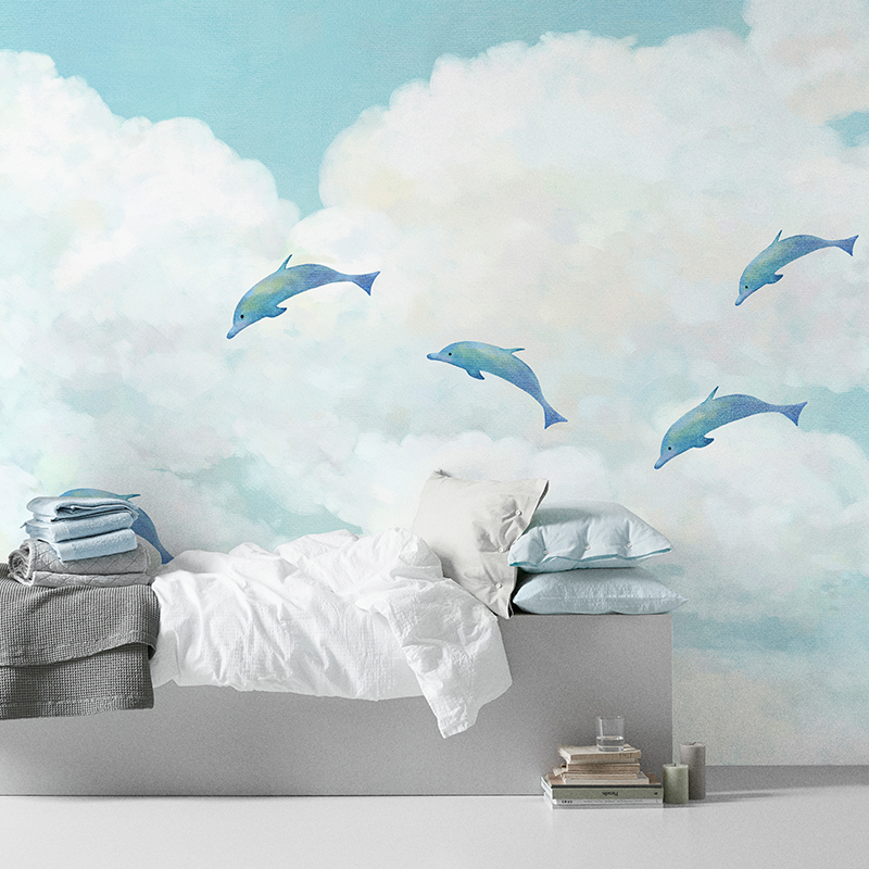 After you install the part 1 mural, then align the part 2 mural with the part 1 mural installed on the wall and paste the part 2 mural, then cut off the overlap of the two panels with knife and mural. Peel off the cut part and level off surface with a scraper.