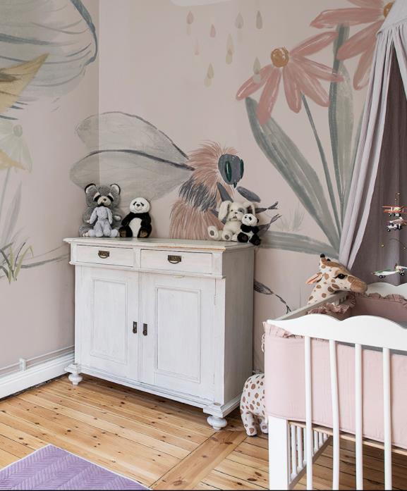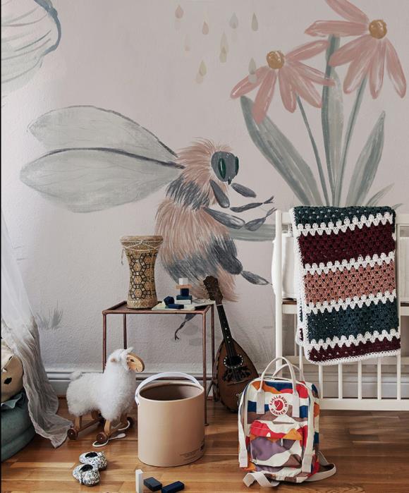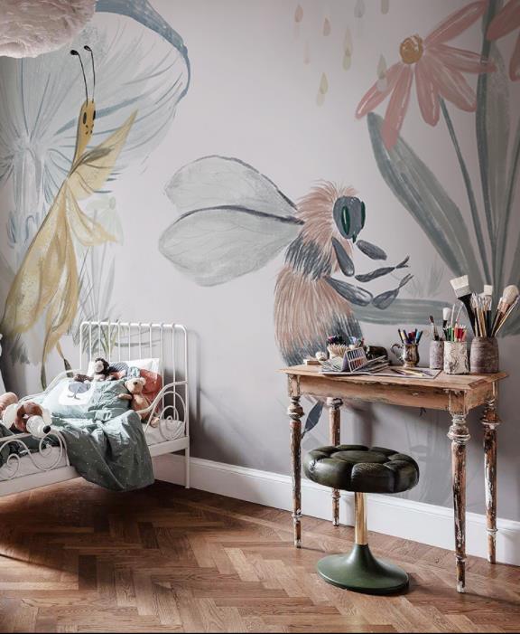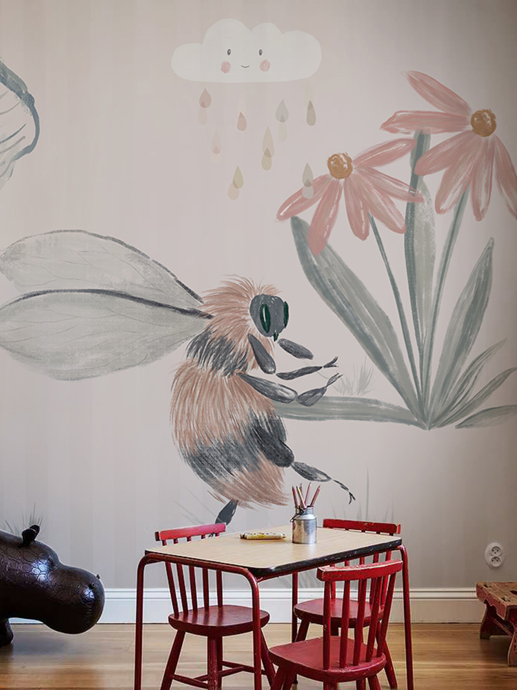 Hand-painted flowers bees wallpaper murals
