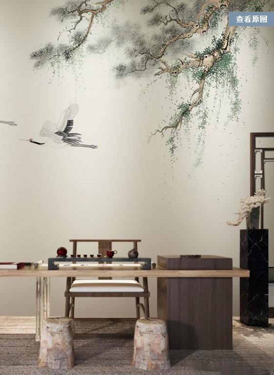 Chinese style elegant artistic conception pine crane TV background wall paper wall cloth sofa