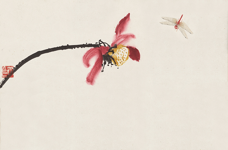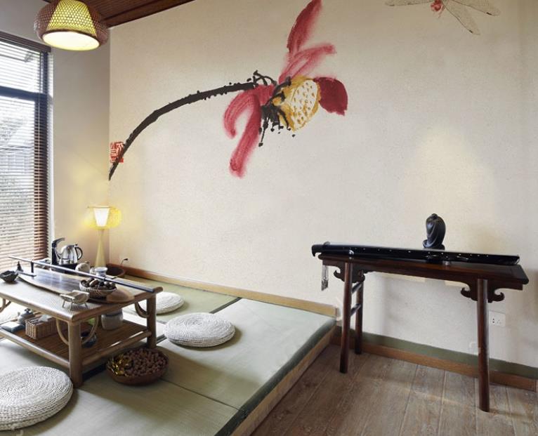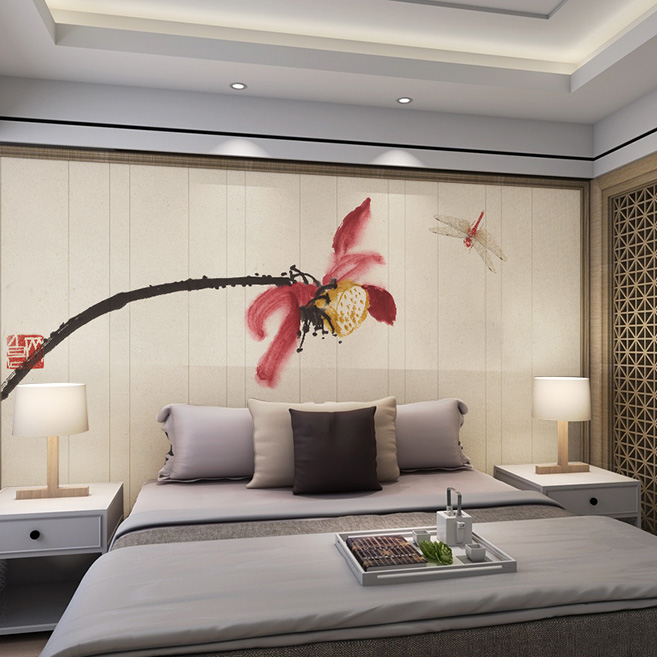 Freehand brushwork in traditional Chinese lotus TV setting wall of new Chinese style tea room mural artistic conception