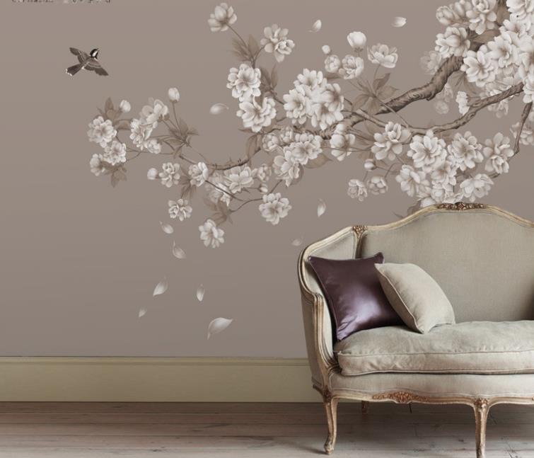 Chinese style wallpaper murals cuttlefish TV setting wall paper wall cloth