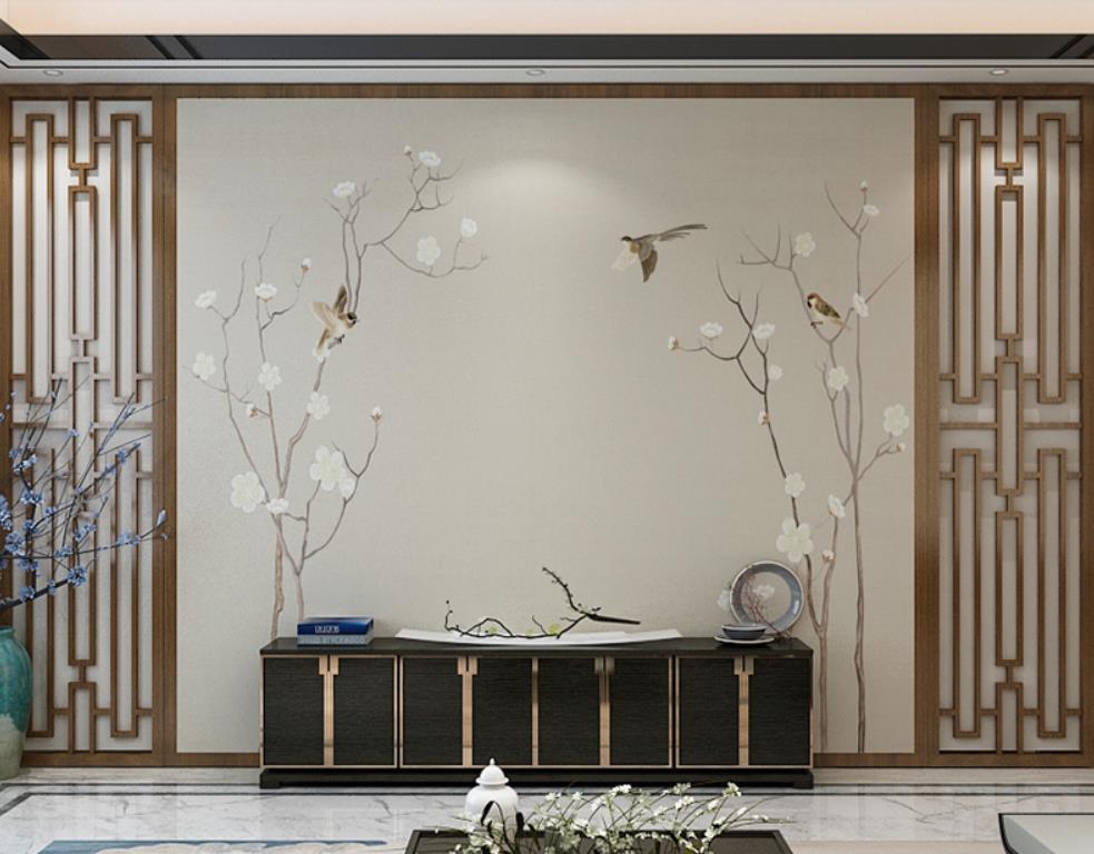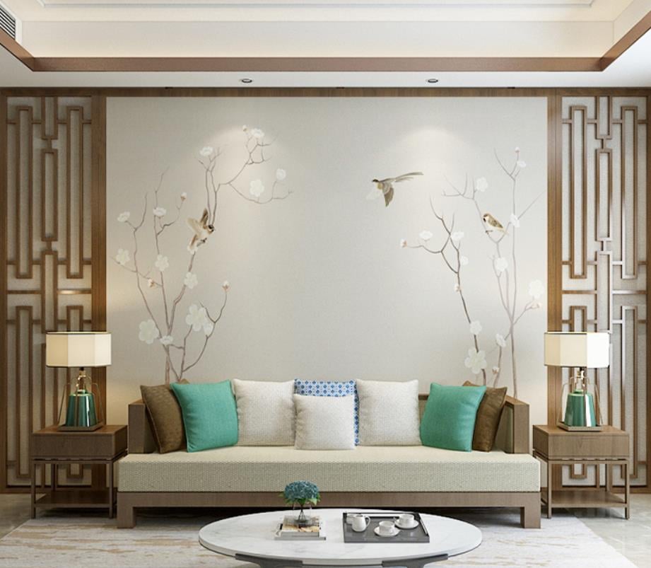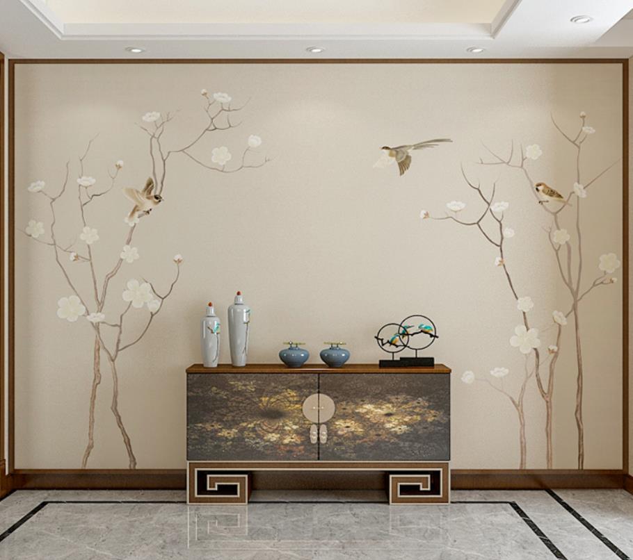 Chinese traditional Chinese realistic painting of flowers and birds sitting room bedroom is simple but elegant wallpaper murals