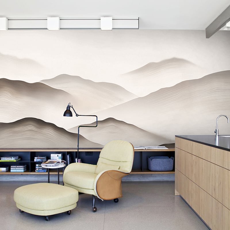 After you install the part 1 mural, then align the part 2 mural with the part 1 mural installed on the wall and paste the part 2 mural, then cut off the overlap of the two panels with knife and mural. Peel off the cut part and level off surface with a scraper.