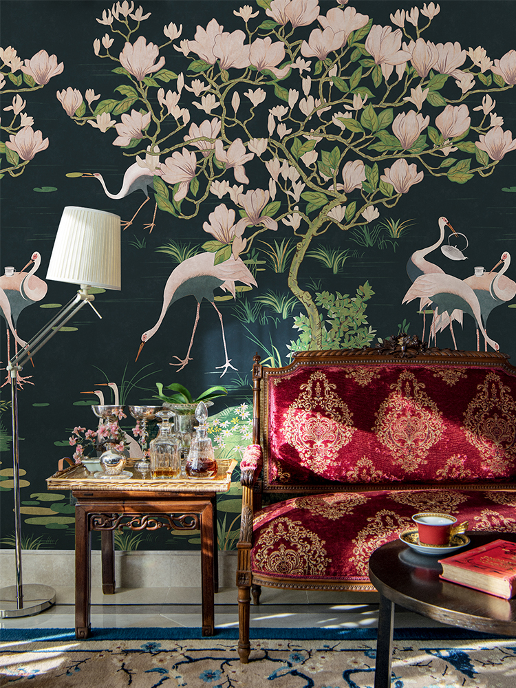 After you install the part 1 mural, then align the part 2 mural with the part 1 mural installed on the wall and paste the part 2 mural, then cut off the overlap of the two panels with knife and mural. Peel off the cut part and level off surface with a scraper.