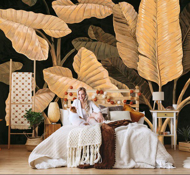 4.Brush glue on wall or back of wallpaper and align the first mural to the chalk line and paste it.(Note: please leave 1-2cm for the top and bottom of the panel)