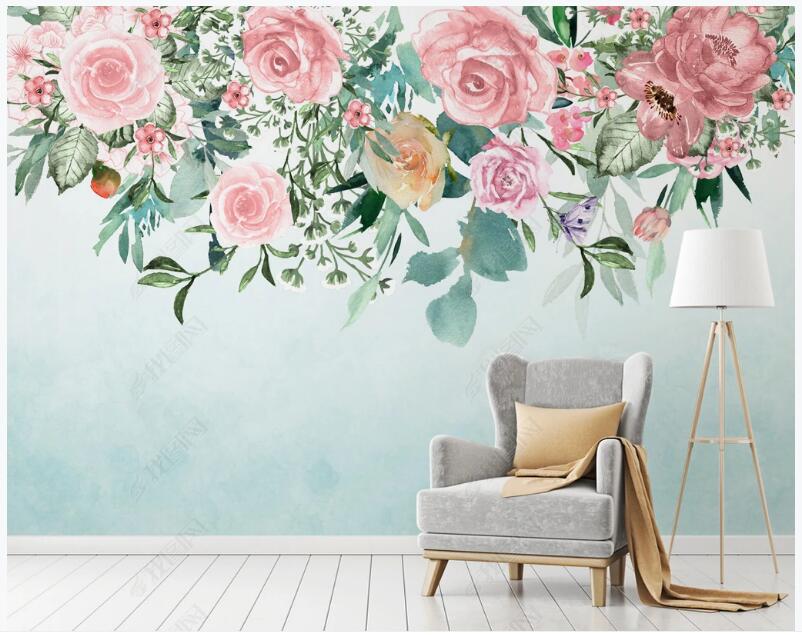Hanging Roses Flowers Floral Wallpaper Wall Mural, Watercolor Beautiful Roses Wall Mural Wall Decor