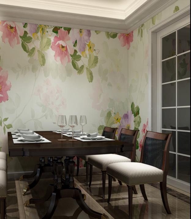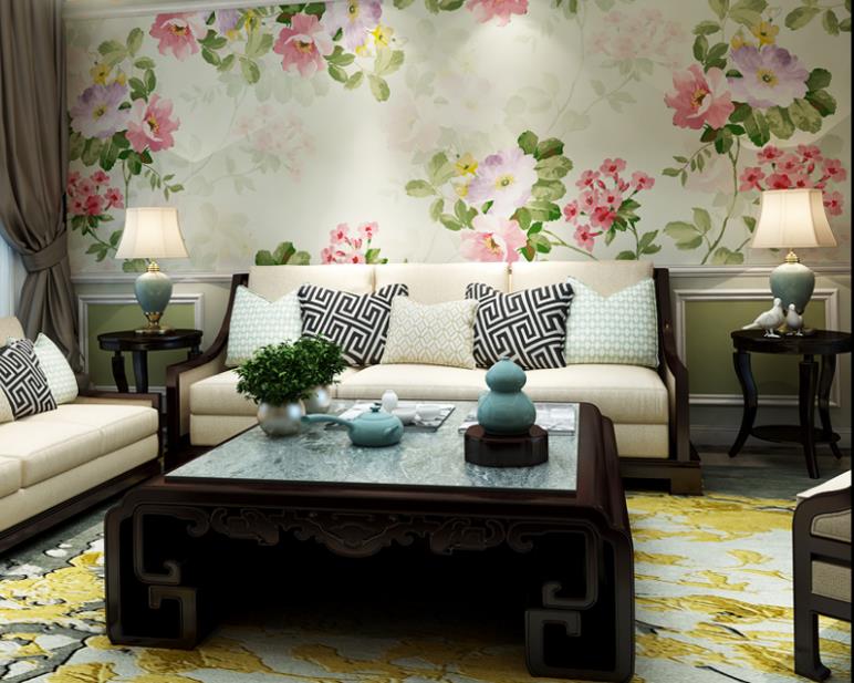 Hand-painted flowers sitting room adornment American TV setting wall paper murals