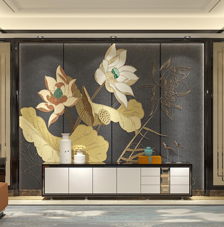 TV setting wall is contracted and contemporary sofa sitting room bedroom wallpaper murals lotus