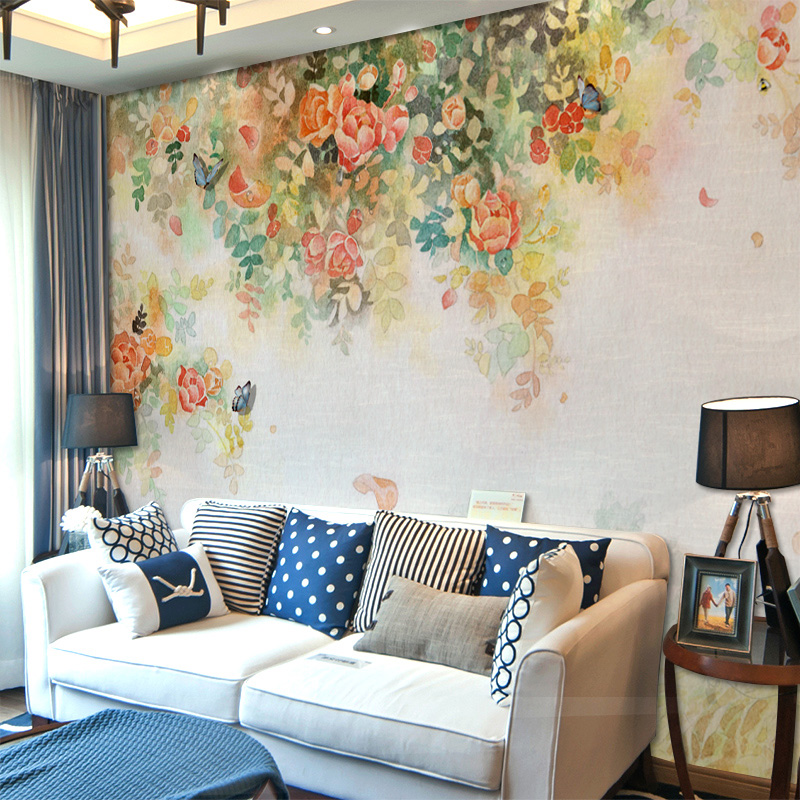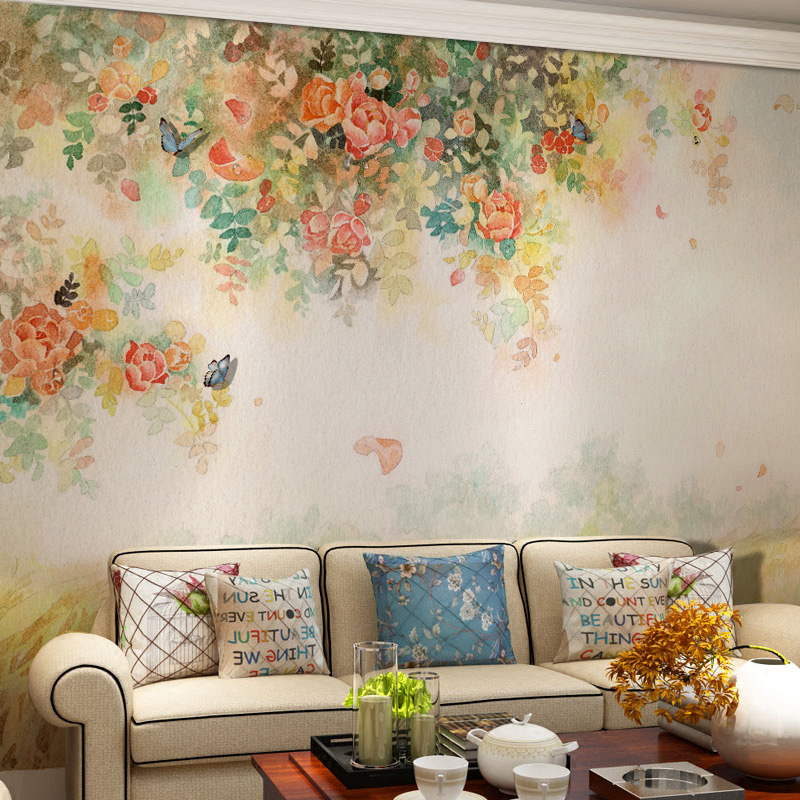 Vines flower butterfly flutters the sitting room the bedroom TV background custom wallpaper murals