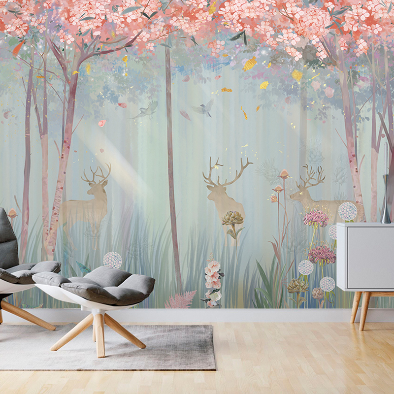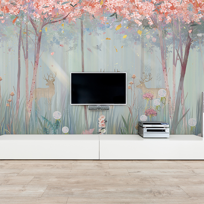4.Brush glue on wall or back of wallpaper and align the first mural to the chalk line and paste it.(Note: please leave 1-2cm for the top and bottom of the panel)