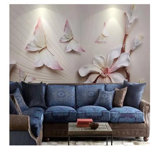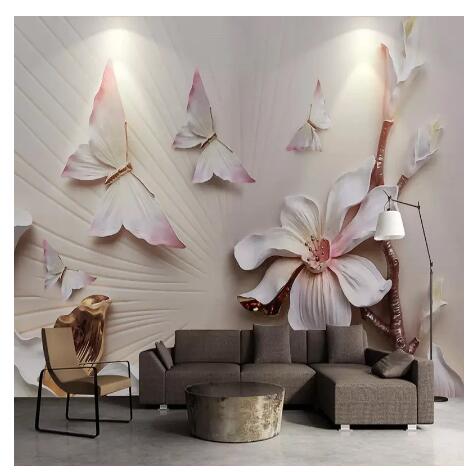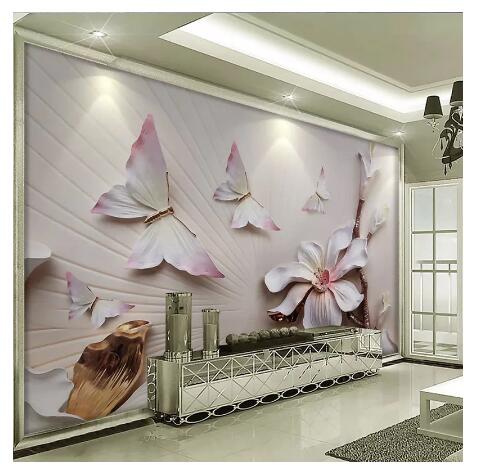 Custom Photo Wall Mural Sleek Minimalist Elegant Jade Orchid Butterfly Wall Cloth Living Room TV Background Wallpaper Decor Home