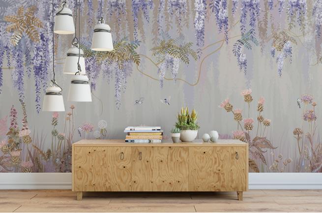 4.Brush glue on wall or back of wallpaper and align the first mural to the chalk line and paste it.(Note: please leave 1-2cm for the top and bottom of the panel)