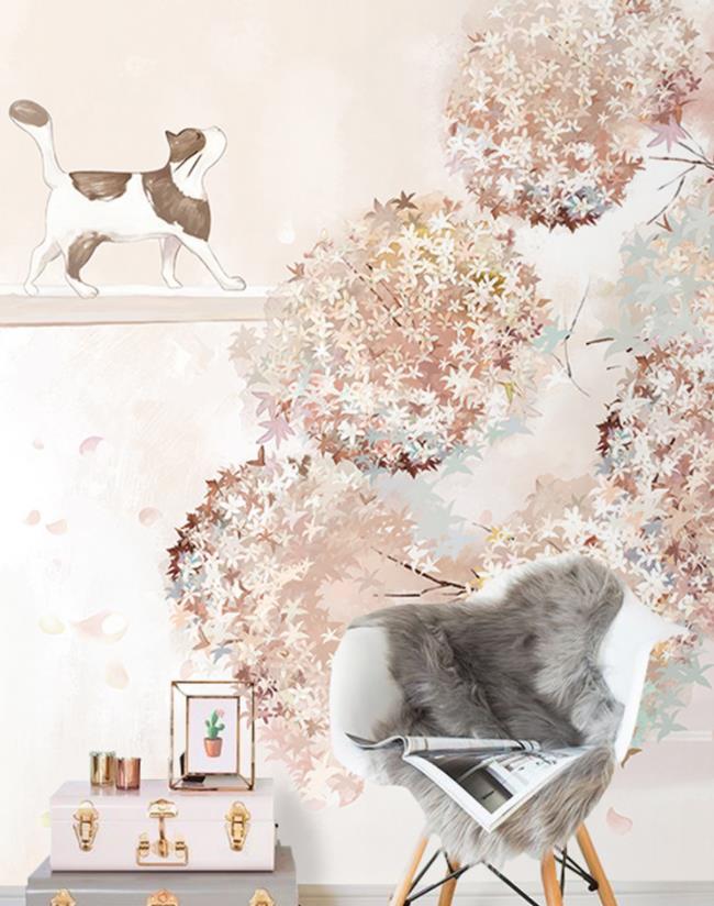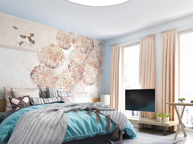 4.Brush glue on wall or back of wallpaper and align the first mural to the chalk line and paste it.(Note: please leave 1-2cm for the top and bottom of the panel)