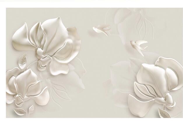 Custom Wall Mural Wallpaper 3D Plaster Relief Magnolia Flower Bird Modern Living Room TV Background Art Wall Painting Home Decor