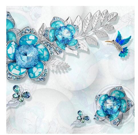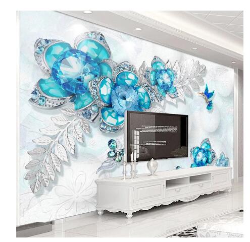 3D Blue Diamond Flowers Wallpaper Wall Murals
