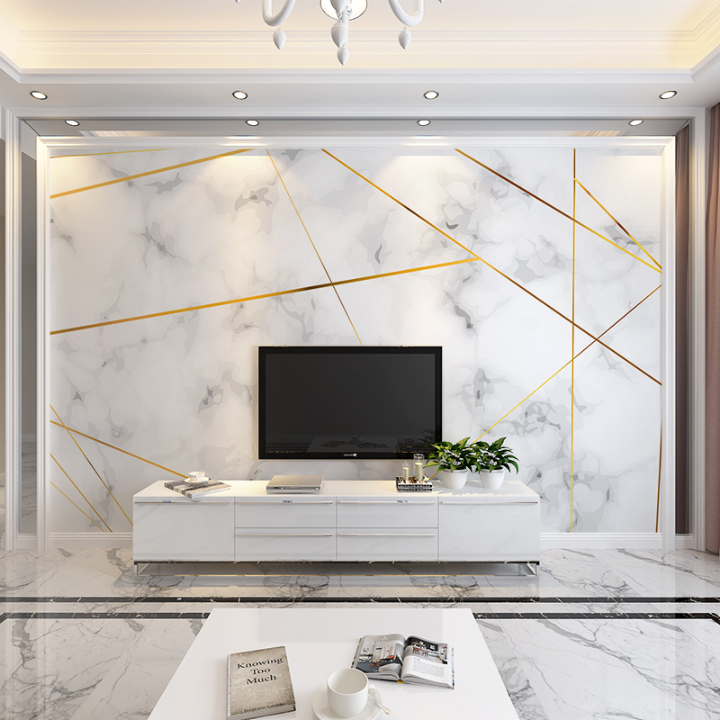 Marble Golden Lines TV Background Wallpaper Wall Coating Home Decor for Living Room Bedroom