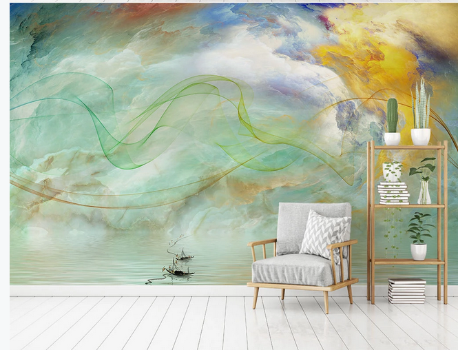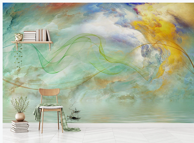Rainbow Clouds Wallpaper, Creative Clouds Wall Murals for Living or Dinning Room