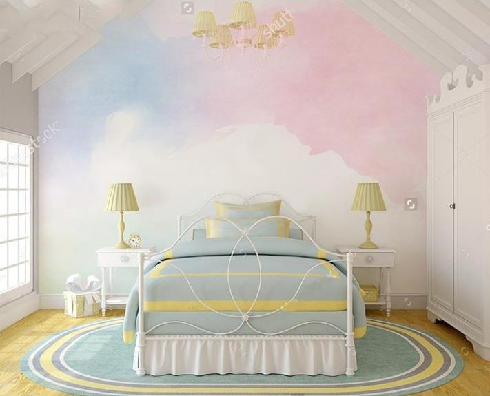 5.Level off surface of mural with a scraper, cut out the excess part with a knife and clean overflow glue with a sponge. Donot touch surface of mural with glue glue and avoid