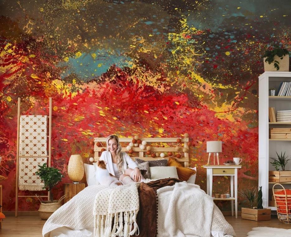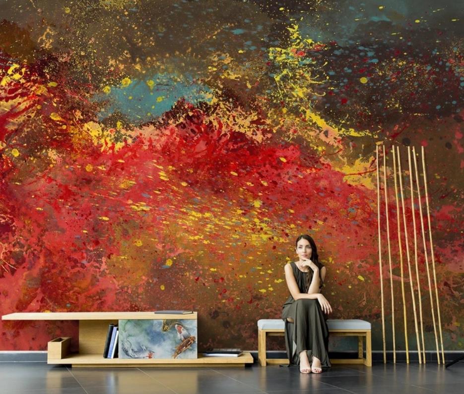 Nordic hand-painted red magma abstract art living room TV setting wall paper wallpaper murals
