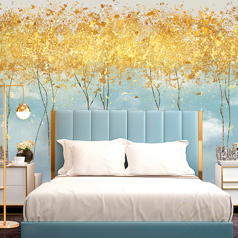 4.Brush glue on wall or back of wallpaper and align the first mural to the chalk line and paste it.(Note: please leave 1-2cm for the top and bottom of the panel)