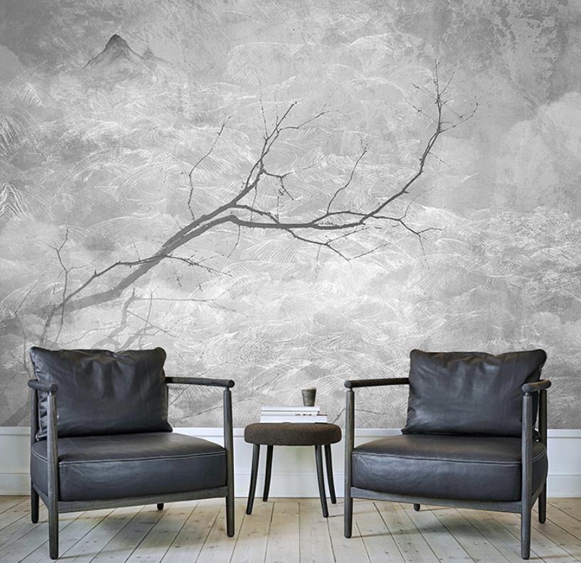 New Chinese style landscape scenery paintings guest branches wallpaper cloud on the sea