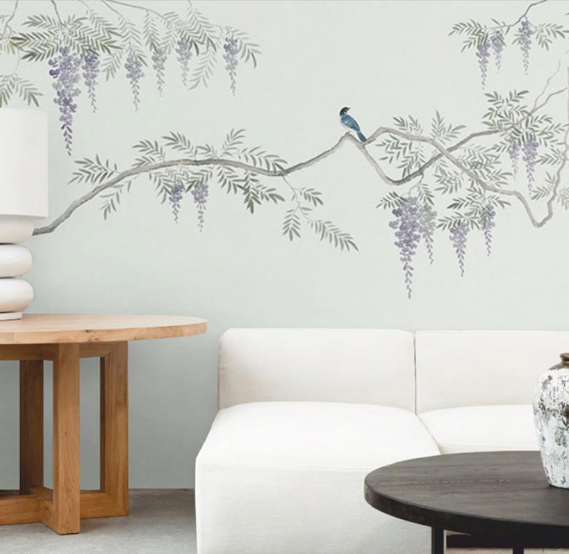 After you install the part 1 mural, then align the part 2 mural with the part 1 mural installed on the wall and paste the part 2 mural, then cut off the overlap of the two panels with knife and mural. Peel off the cut part and level off surface with a scraper.