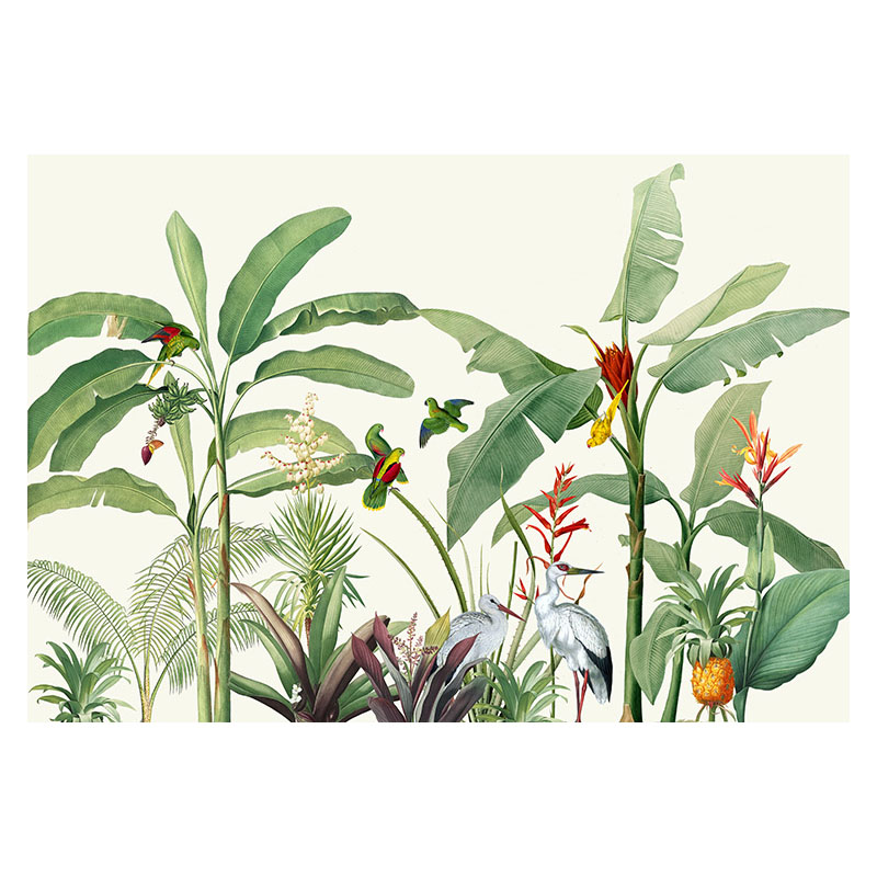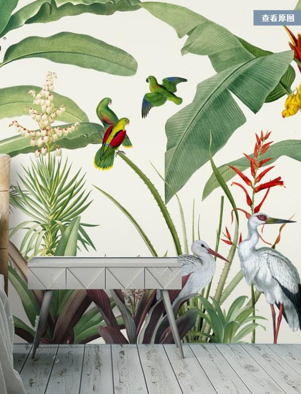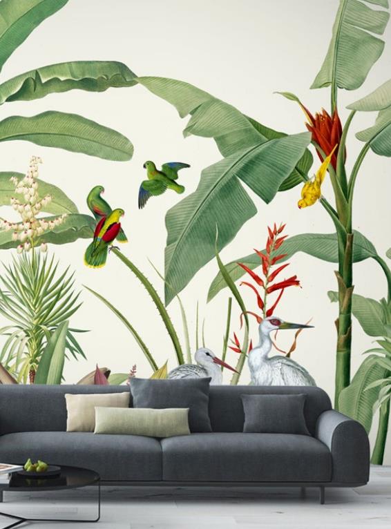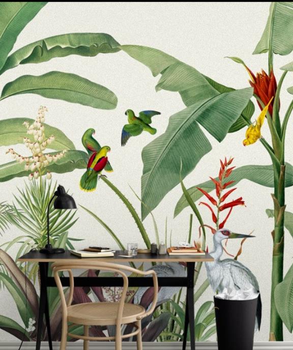Southeast Asia style tropical rainforest plants green leaves setting wall wallpaper