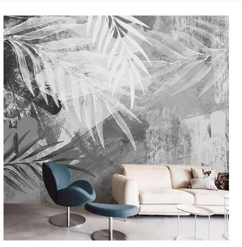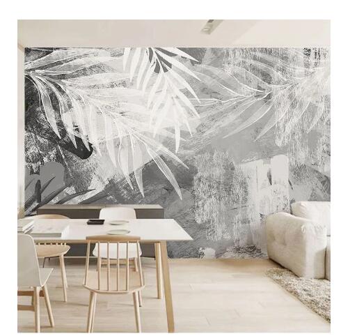 White and Grey Plam Leaves Wallpaper Wall Murals