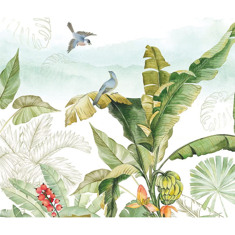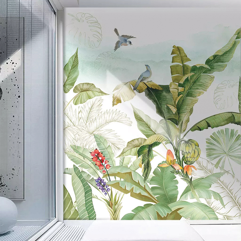 Boreal Europe style southeast Asian rainforest leaves custom wallpaper murals