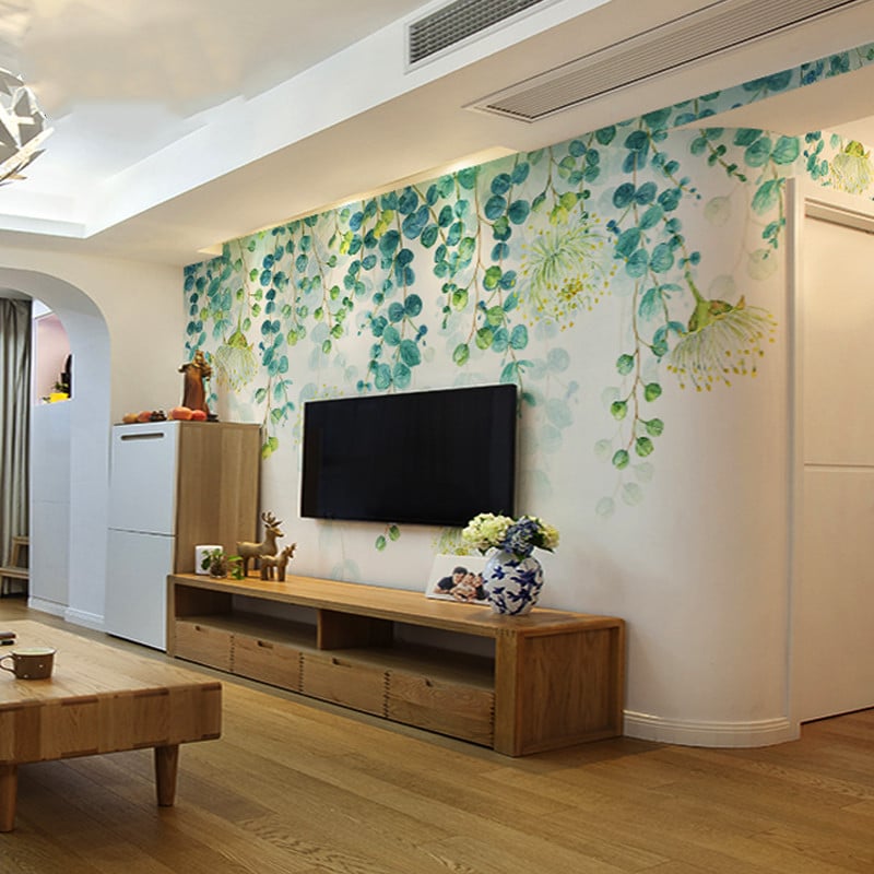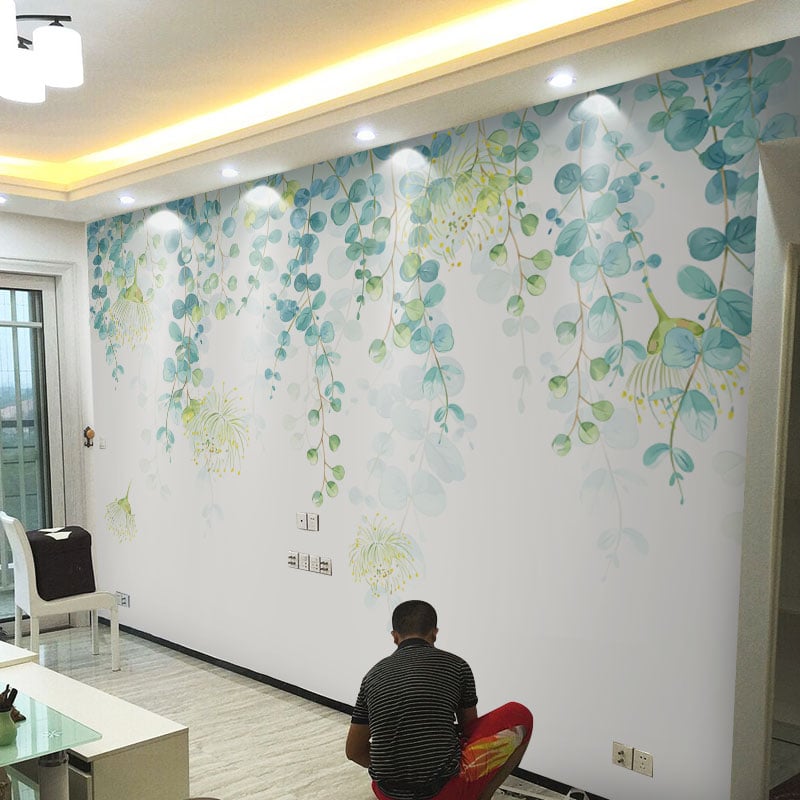 Nordic wallpaper, pure and fresh and green leaves are contemporary and contracted custom murals