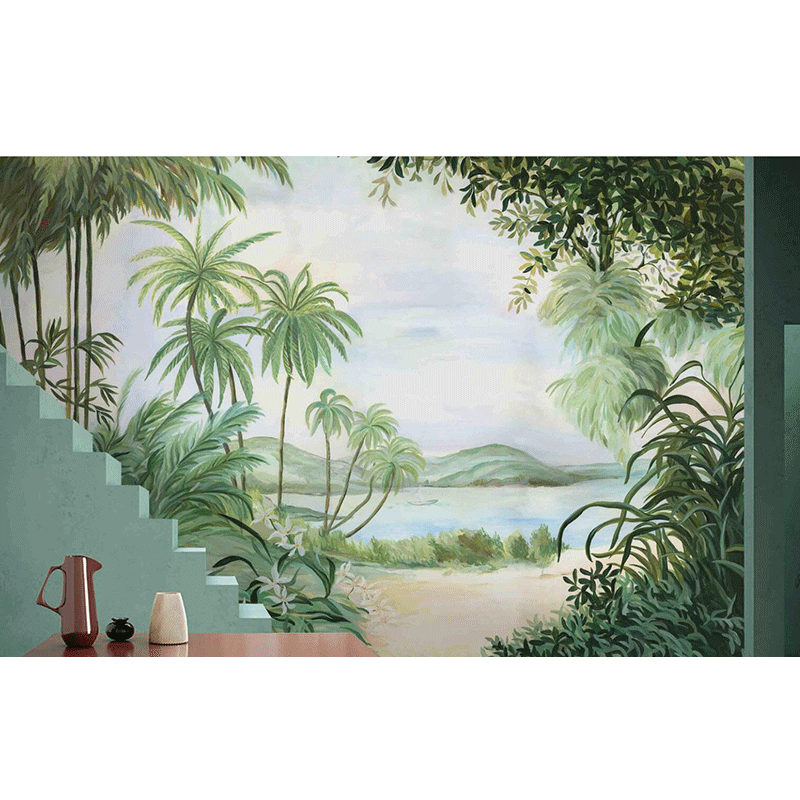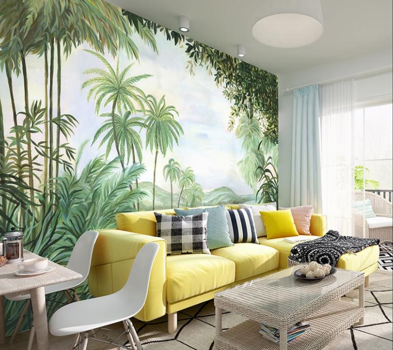 Tropical rain forest wallpaper wallpaper banana TV setting wall restaurant