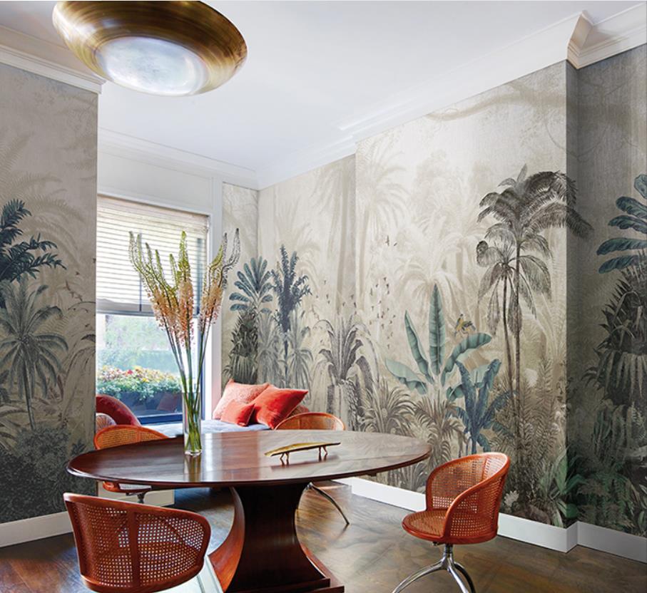 After you install the part 1 mural, then align the part 2 mural with the part 1 mural installed on the wall and paste the part 2 mural, then cut off the overlap of the two panels with knife and mural. Peel off the cut part and level off surface with a scraper.