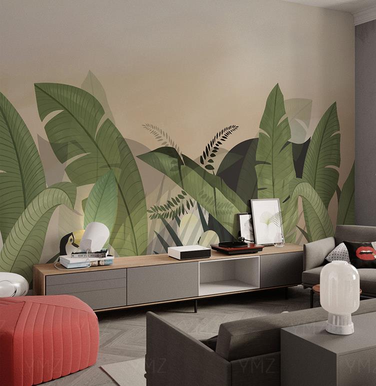 4.Brush glue on wall or back of wallpaper and align the first mural to the chalk line and paste it.(Note: please leave 1-2cm for the top and bottom of the panel)