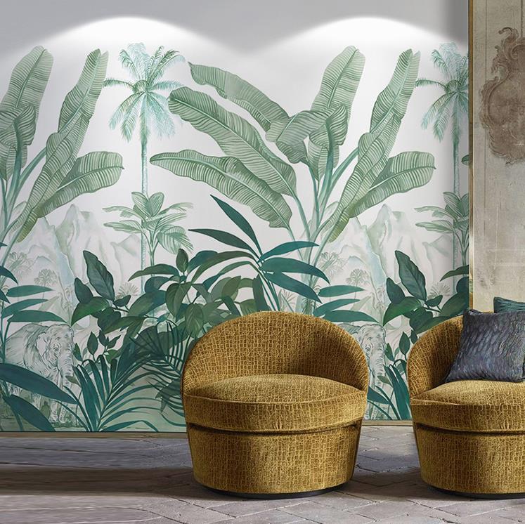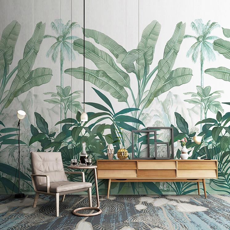 4.Brush glue on wall or back of wallpaper and align the first mural to the chalk line and paste it.(Note: please leave 1-2cm for the top and bottom of the panel)