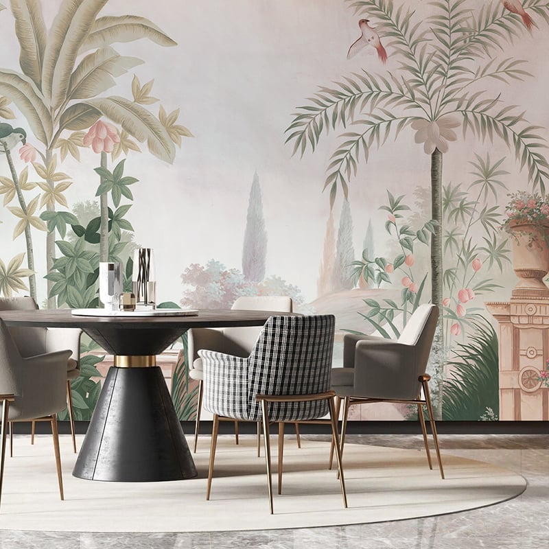 Hand-painted southeast Asian rainforest plant wall cloth wallpaper