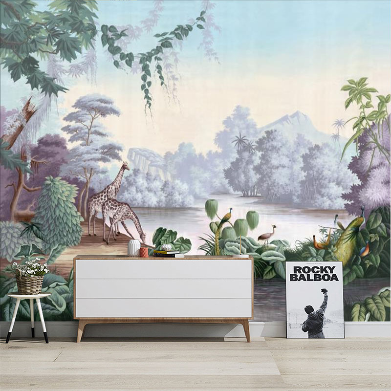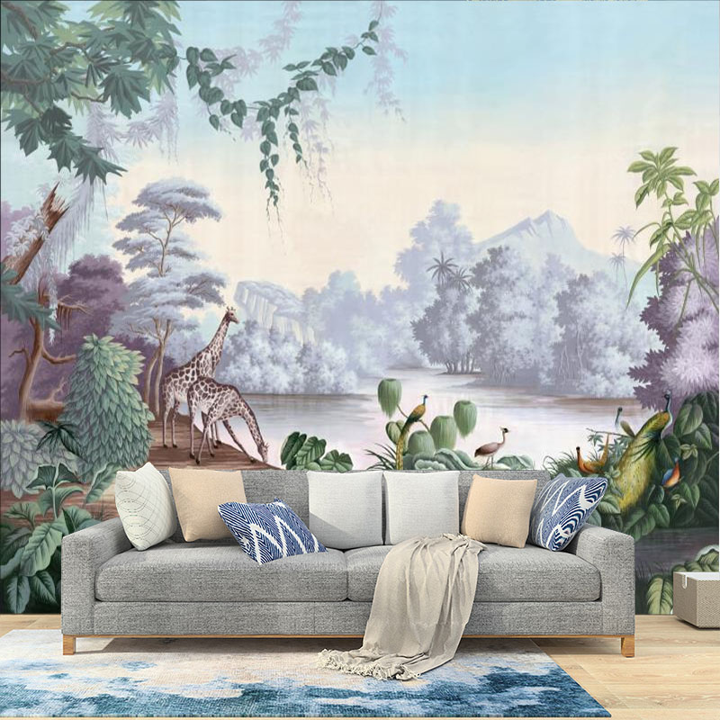 After you install the part 1 mural, then align the part 2 mural with the part 1 mural installed on the wall and paste the part 2 mural, then cut off the overlap of the two panels with knife and mural. Peel off the cut part and level off surface with a scraper.
