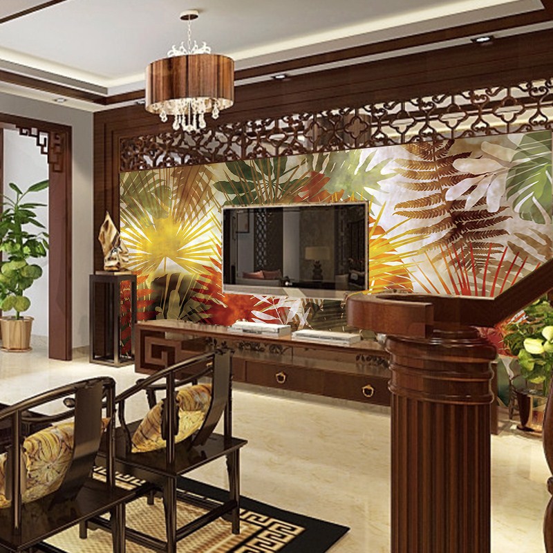 4.Brush glue on wall or back of wallpaper and align the first mural to the chalk line and paste it.(Note: please leave 1-2cm for the top and bottom of the panel)