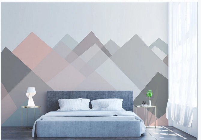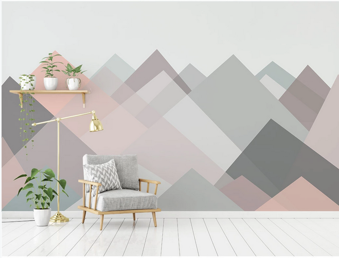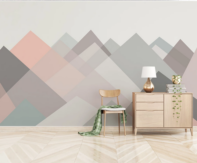 Modern Geometry Mountain Wallpaper, Simple Geometry Wall Murals for Living or Dinning Room