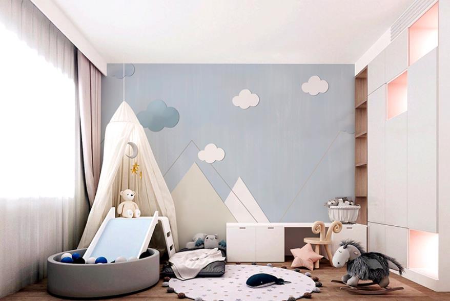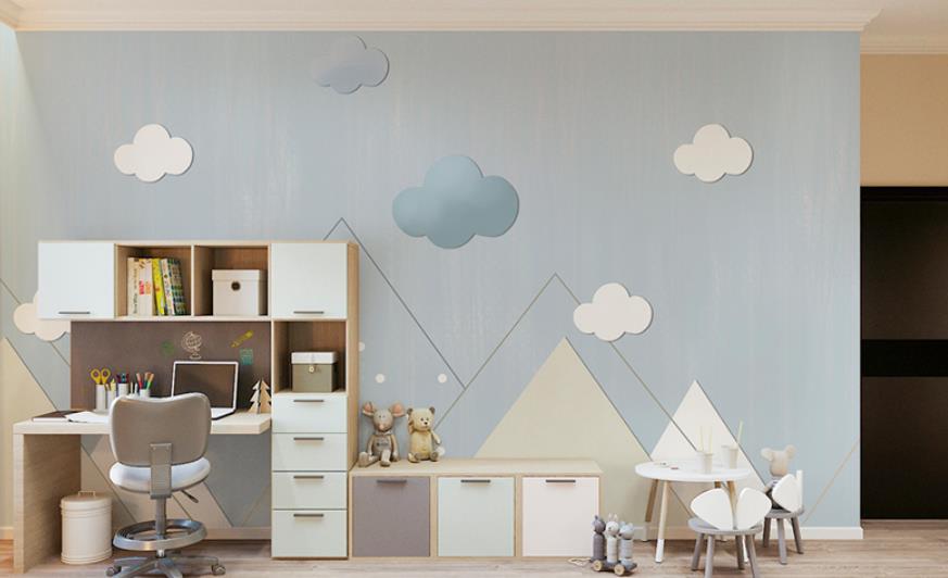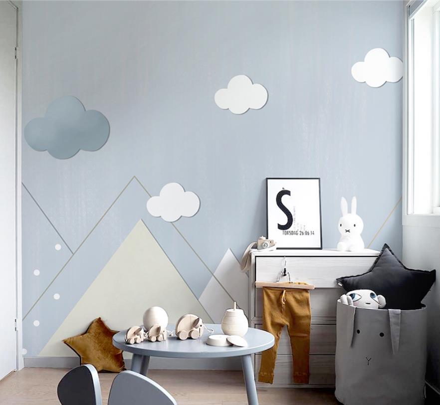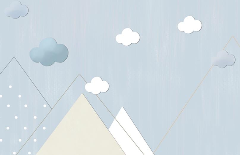 The clouds geometric cartoon boy in the bedroom of children room wall cloth wallpaper murals