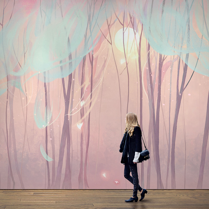 After you install the part 1 mural, then align the part 2 mural with the part 1 mural installed on the wall and paste the part 2 mural, then cut off the overlap of the two panels with knife and mural. Peel off the cut part and level off surface with a scraper.