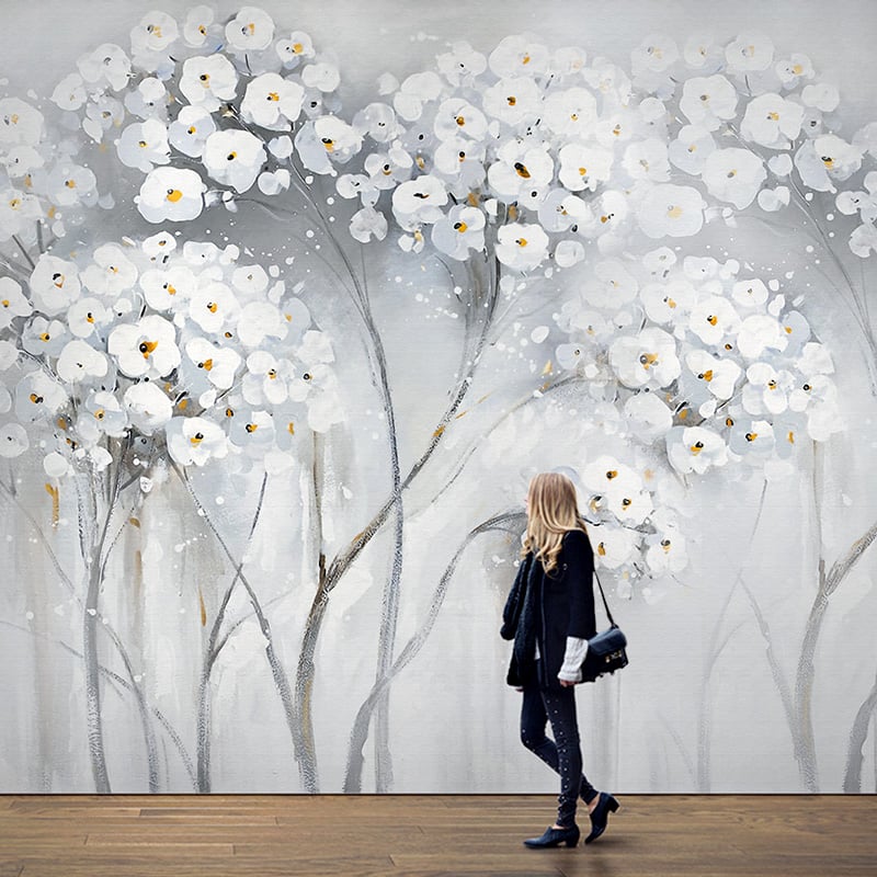 After you install the part 1 mural, then align the part 2 mural with the part 1 mural installed on the wall and paste the part 2 mural, then cut off the overlap of the two panels with knife and mural. Peel off the cut part and level off surface with a scraper.