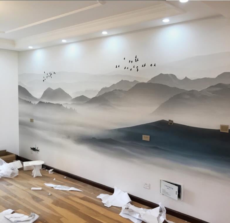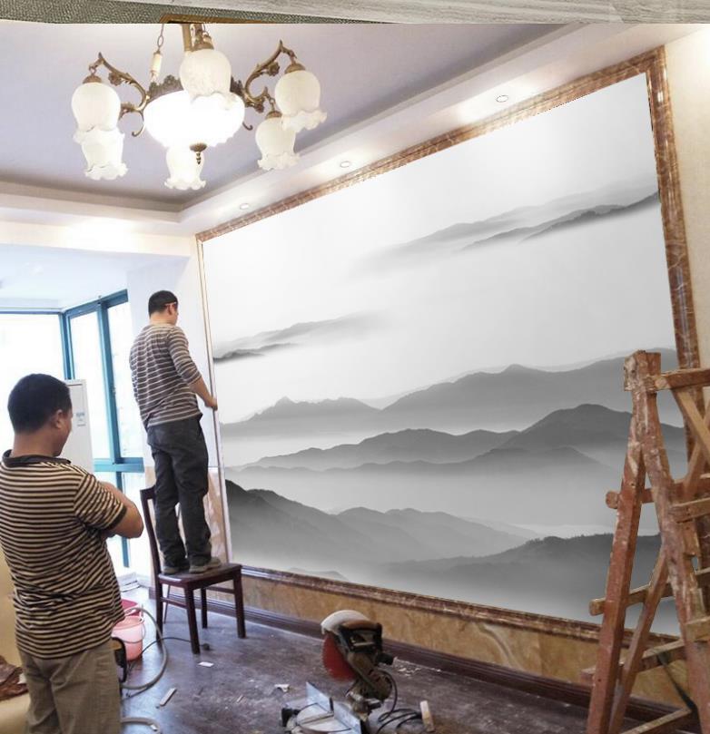 After you install the part 1 mural, then align the part 2 mural with the part 1 mural installed on the wall and paste the part 2 mural, then cut off the overlap of the two panels with knife and mural. Peel off the cut part and level off surface with a scraper.